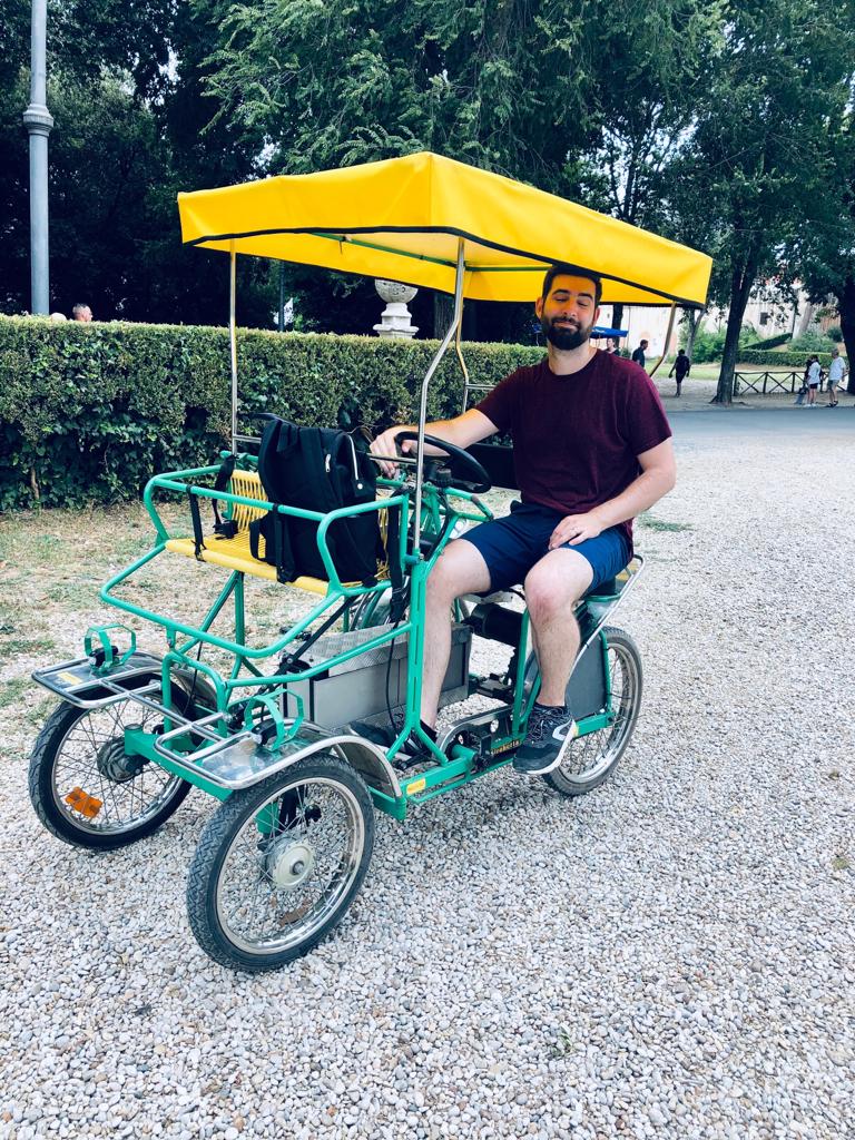 Before taking in the gallery, we meandered through the gardens. To fit it all in, we hired an electric-powered pedal car (Ryan drove) and it was so much fun!